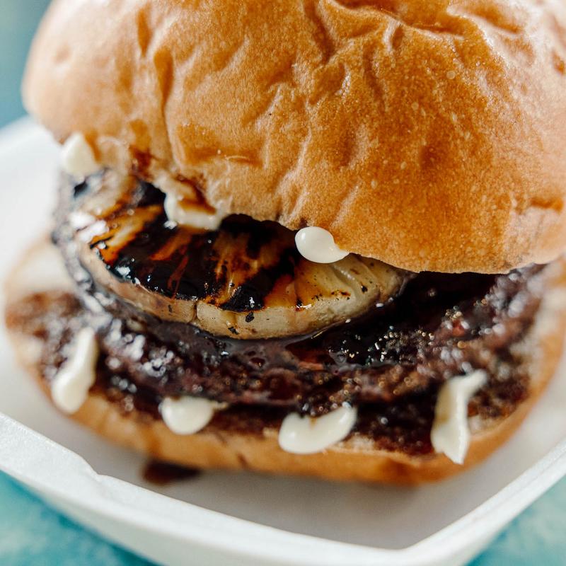 2 - 1/4 lb beef patty served with grilled pineapple, mayo and teriyaki sauce on a locally sourced bun. Our beef comes from Crown Foods who uses local farms for their burgers.