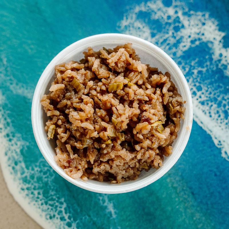 Seasoned stir-fried rice with bacon, onion, celery and topped with green onion. As with most Hawaiian dishes this one has the perfect hint of sweetness.