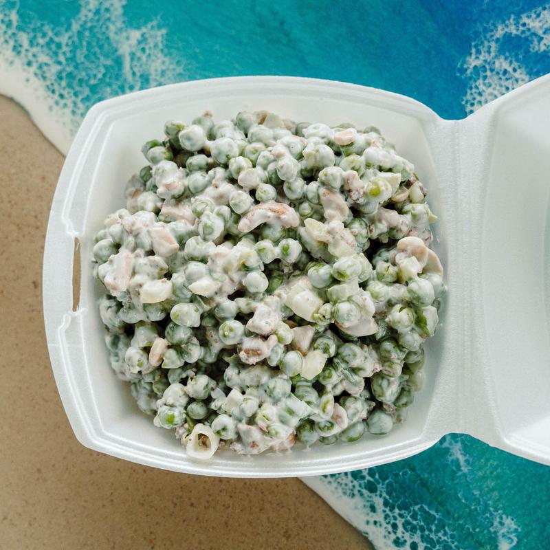 Hawaiian Pea salad with cashews, bacon, green onions, and of course peas • Small $7.14 | Medium $10.68 | Large $25.74